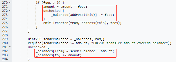 - To rectify this, the subsequent line of code should be “_balances[to] += amount — fees.”