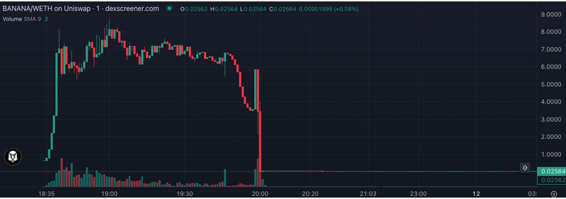 On September 11, 2023, The launch of the Telegram bot Banana Gun’s native token BANANA faced a huge drop in price due to a business logical vulnerability, with the price of the newly launched BANANA falling from a peak of $8.70 to $0.02 in less than 3 hours after it launched.
