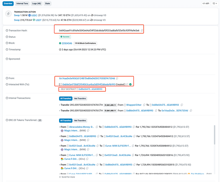 Abracadabra Hack AnalysisFig: Abracadabra Money Hack BannerOverview:On October 4, 2025, Abracadabra Money (@MIM_Spell), a decentralized lending platform on Ethereum that issues USD-pegged MIM (Magic Internet Money) loans, suffered a critical solvency bypass exploit via the cook() multi-action entrypoint., resulting in an estimated loss of ~$1.7 million USD. This protocol has been attacked for the third time in past 2 years; with heavy…