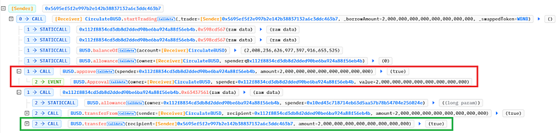 - The SwapHelper contract conducts internal calls and obtains approval from the BUSD contract in order to approve and transfer BUSD tokens to an attacker-controlled address.