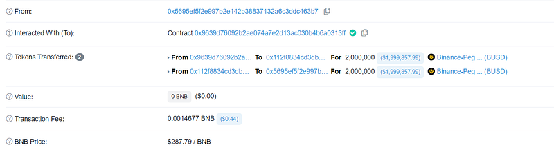 - StartTrading(), which serves as a backdoor for the BUSD contract, was called by the contract owner.