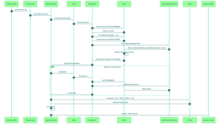They repeated this sequence across six different CauldronV4 contracts to maximize the stolen amount.