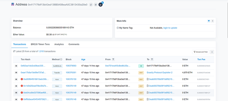 - Exploiter address 3: 0x417179