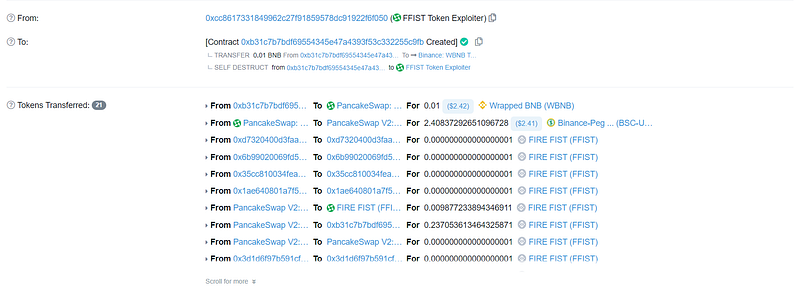 On July 20, 2023, $FFIST suffered an attack due to a business logic issue leading to a loss of ~110K USD.