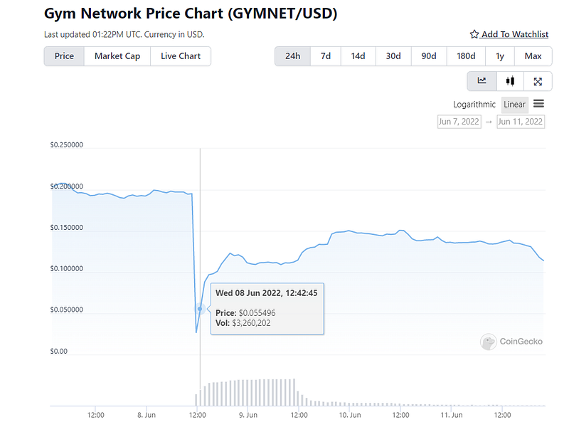 Fig: Sudden drop in GYMNET token price after the hack