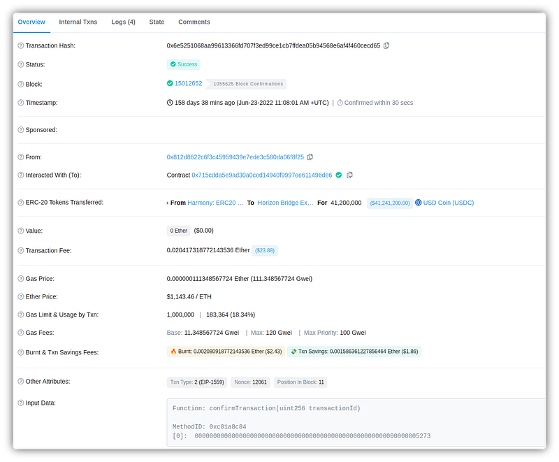 - It was also discovered that Harmony’s multi-sig wallet code was not verified and was derived from the ConsenSys multi-sig wallet contract code.