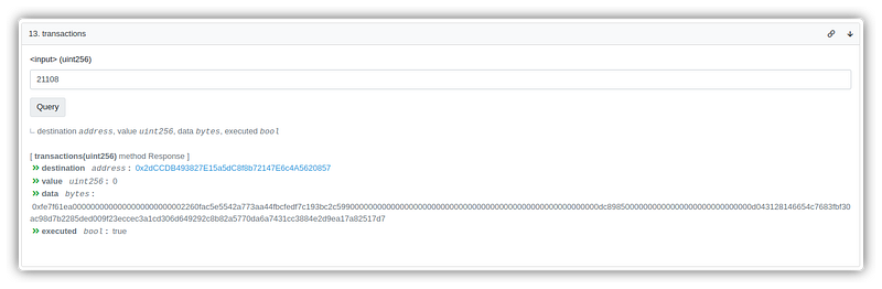 - After inspecting transaction 21108, it was discovered that two multi-sig wallets were utilized to confirm the transactions.