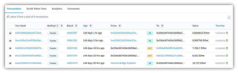 - Harmony Bridge all ERC20 token transactions: 0x0d0431