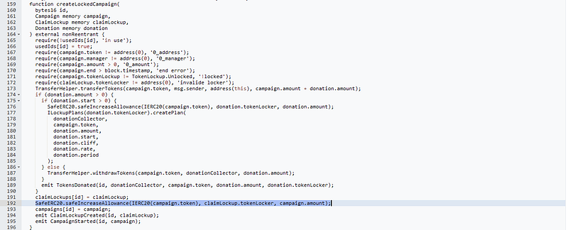 - Upon campaign creation, locked tokens are transferred to a contract, with allowance granted to the user.