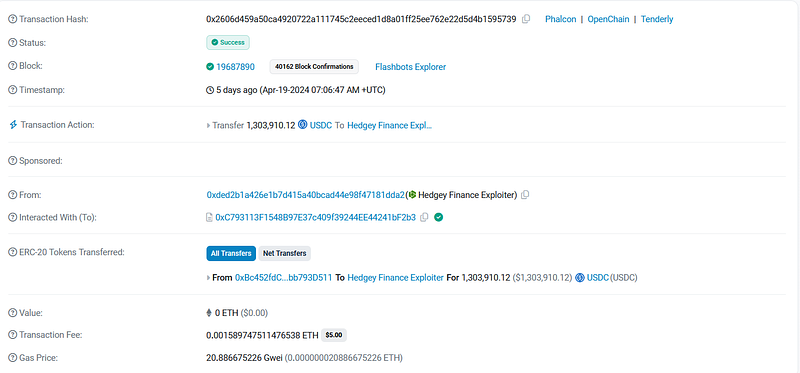 On April 19, 2024, Hedgey Finance suffered an attack due to a business logic issue, leading to a total loss of over 45M USD.