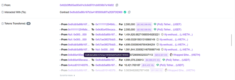 - At this point, after completing the swap operation within the deposit function, the contract minted tokens once again based on the ratio of 2.5M USDT to the contract’s USDT balance.