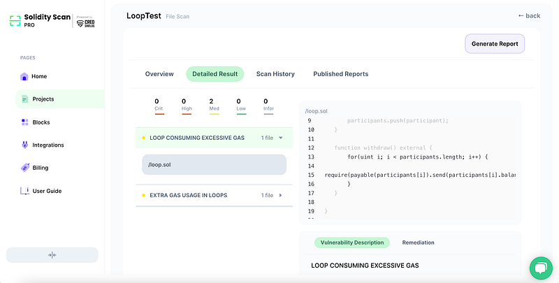 Our cloud-based smart contract security scanner SolidityScan can automatically find vulnerabilities related to unchecked loops.