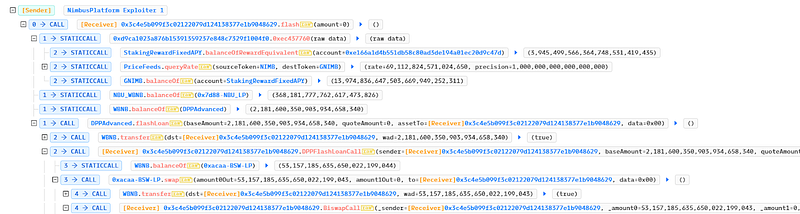 - Following the flashloan attack, the ratio of Nimbus Utility tokens to Nimbus Governance tokens increased to 2919.7:1, which resulted in a greater payment. To repay the flash loan, the exploiter exchanged $GNIMB for $BNB.