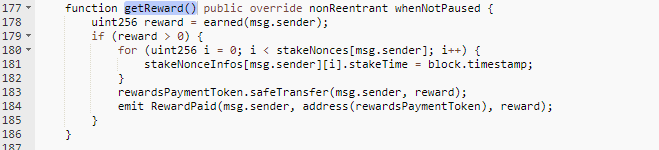 getReward()method permitted the hacker to earn a greater reward since the computation of the token reward was proportional to the ratio of $NIMB and $GNIMB in the pool.
