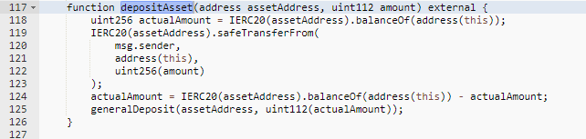 depositAsset()method of ExchangeWithOrionPool, which lacked reentrancy protection/modifiers, the attacker constructed a false token (ATK) with self-destruct that led to thetransfer()function.