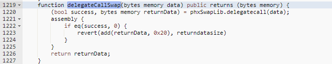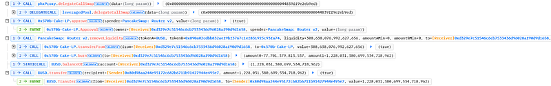 - The attacker then provided the fake BUSD token pair into the calldata of the phxProxy delegateCallSwap() method, after which the phxProxy purchased all of the tokens.