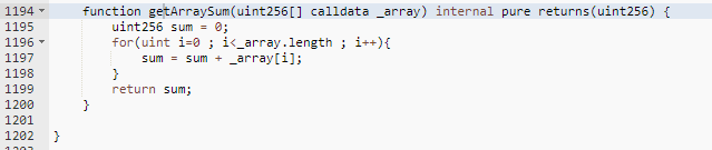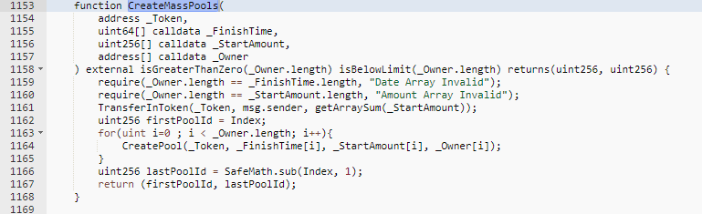 GetArraySum()method was called internally by theCreateMassPools()function, which controlled the tokens in theTransferInToken()function, which was used to establish liquidity in the pool.