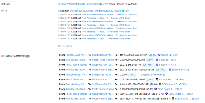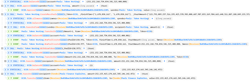 - The attack began when the CreateMassPools() method was invoked and the attacker provided the attributes and liquidity required to create multiple pools.