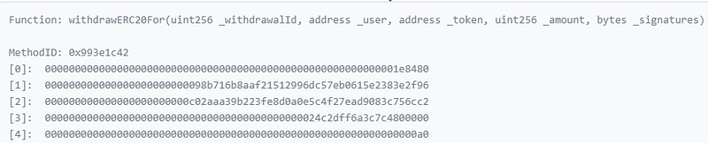 - The attacker successfully overruled all transaction security once five out of the nine validator nodes were hacked, allowing them to withdraw any amount of money they wished from withdrawERC20For ()