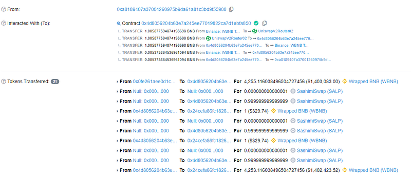 Due to an inappropriate swap and the Sashmi router’s architectural design, an attack on the Sashimi swap happened on December 30, 2021, causing a loss of $210,000.