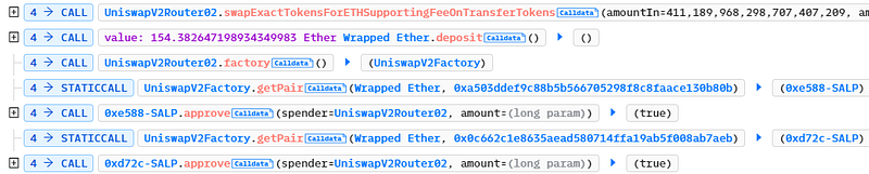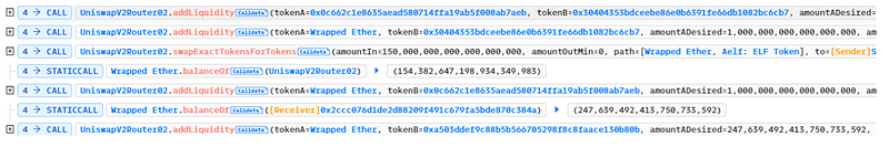 - The attacker then went to the UniswapRouter contract to swap the tokens after creating pairings and adding WETH liquidity on those three tokens.