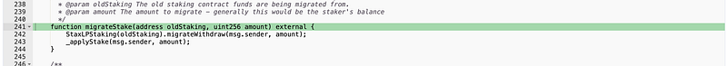 Combining these two issues, it was possible for the attacker to create a malicious contract and use it as the first parameter for oldStaking and an arbitrary value for the amount, which was then withdrawn from the underlying vault and minted to the attacker.