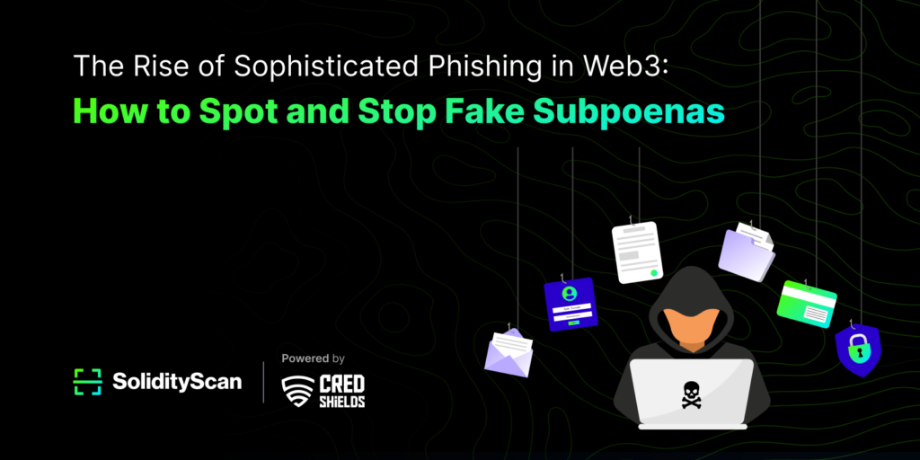 Imagine receiving an email from “Google Legal” with a subpoena requesting your cryptocurrency wallet information—only to discover it was a fraud that has emptied your savings. On May 2, 2025, stories emerged of scammers mimicking law enforcement with falsified subpoenas and targeting Web3 users in a terrifying new wave of phishing assaults. With phishing costing the crypto industry $2.3 billion in 2024 alone, these sophisticated frauds should serve as a wake-up signal to everyone involved in the decentralized ecosystem. At CredShields, we want to help you stay one step ahead. In this post, we’ll explain how the false subpoena scam works, offer five practical techniques to defend yourself, and demonstrate how our cloud-based pentesting tool secures Web3 platforms.