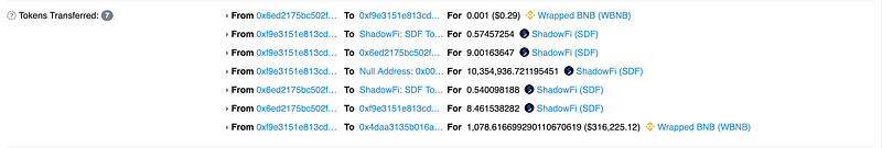 3. Now the hacker sells his 9 SDF token for a crazy amount of 316,000$ in WBNB