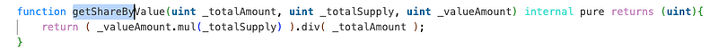 getShareByValuefunction performs the following calculation:return (_valueAmount.mul(_totalSupply)).div(_totalAmount);This division is prone to rounding errors in favor of the user. A more precise approach would be to use a rounding-up division method (divUp) to ensure the protocol is not over-allocating tokens.