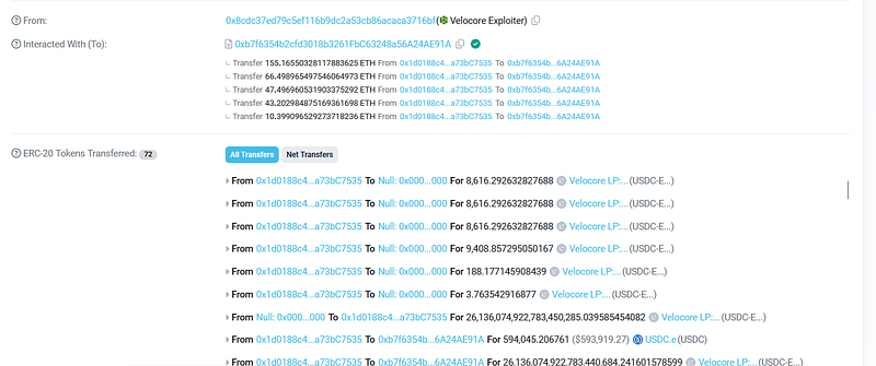 - The attacker exploited a lack of permission verification in the LP Pool, allowing them to directly call the velocore__execute function with specially crafted parameters.