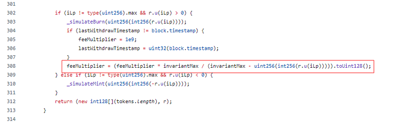 - By manipulating the feeMultiplier parameter through the velocore__execute function, the attacker altered the calculation affecting the number of tokens exchanged.
